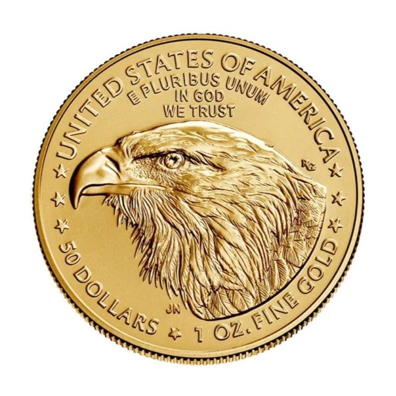 Die 1-Unzen-Goldmünze „Eagle“ besteht aus 22 Karat Gold (.9167) und enthält 31,10 Gramm reines Gold. Sie ist das offizielle gesetzliche Zahlungsmittel in den Vereinigten Staaten von Amerika und hat einen Wert von 50 US-Dollar.