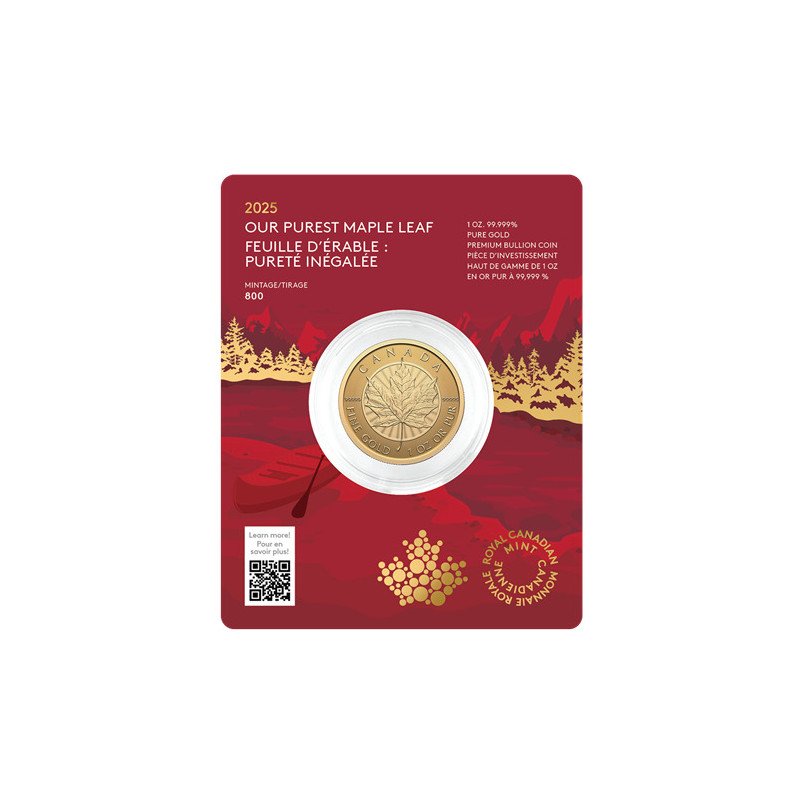 Our Purest Maple Leaf ist eine aufregende neue Ergänzung unserer Premium-Bullion-Linie in Sonderverpackung und bietet Ihnen einige der reinsten Goldmünzen der Welt in einer praktischen 1-oz-Größe.