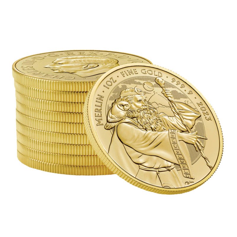 All of the 2023 1 oz British Gold Merlin Coins are available to you with individual flips. The coins ship in protective tubes of 10 or boxes of 100 coins when buying multiples. Each coin is available to you in Brilliant Uncirculated condition.
