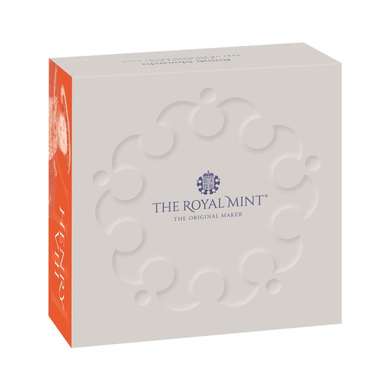 The reverse features a remastered portrait of Henry VIII that depicts the powerful king facing forward
