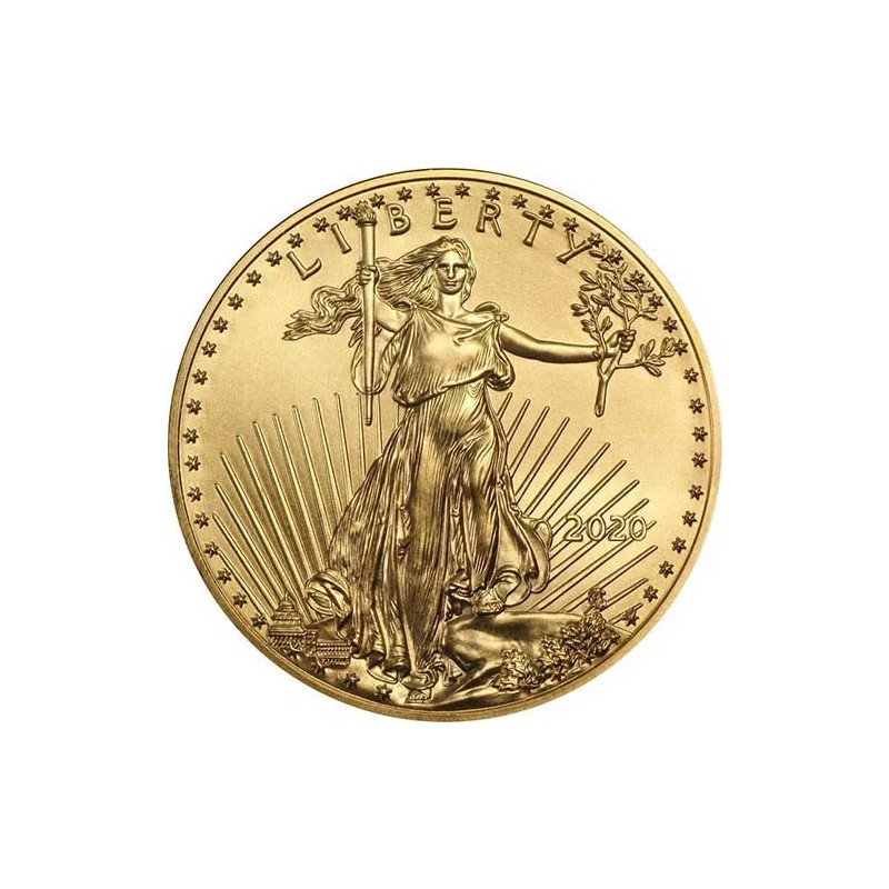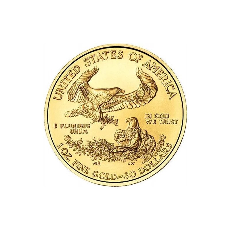 The American Gold Eagle is minted using 22-karat gold (.9167 in purity) and contains one troy ounce of pure gold in total. This means that the coin itself will be larger than coins like the Gold Maple Leaf which has a purity of .9999, so the eagle will still contain one ounce of pure gold.