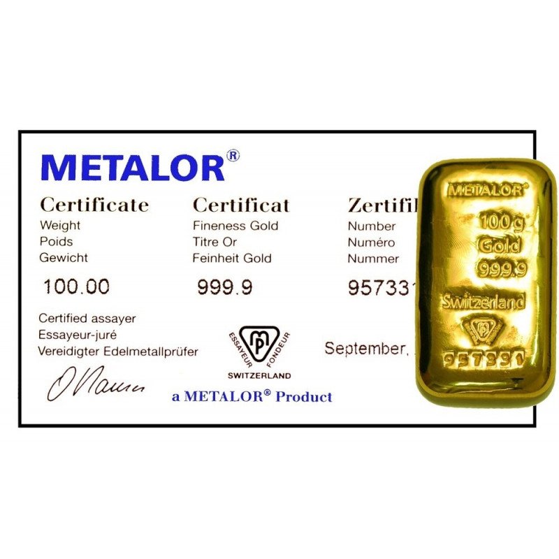 Acquista lingotto d'oro da 100 g - Cast Certified‎ - negozi di lingotti d'oro