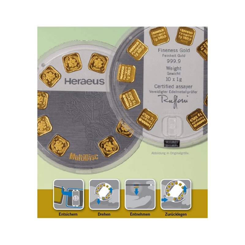Rinomati commercianti di monete e lingotti sono la vostra fonte principale per l'acquisto di Heraeus MultiDisc. Conduci ricerche approfondite per assicurarti di avere a che fare con un venditore affidabile.
