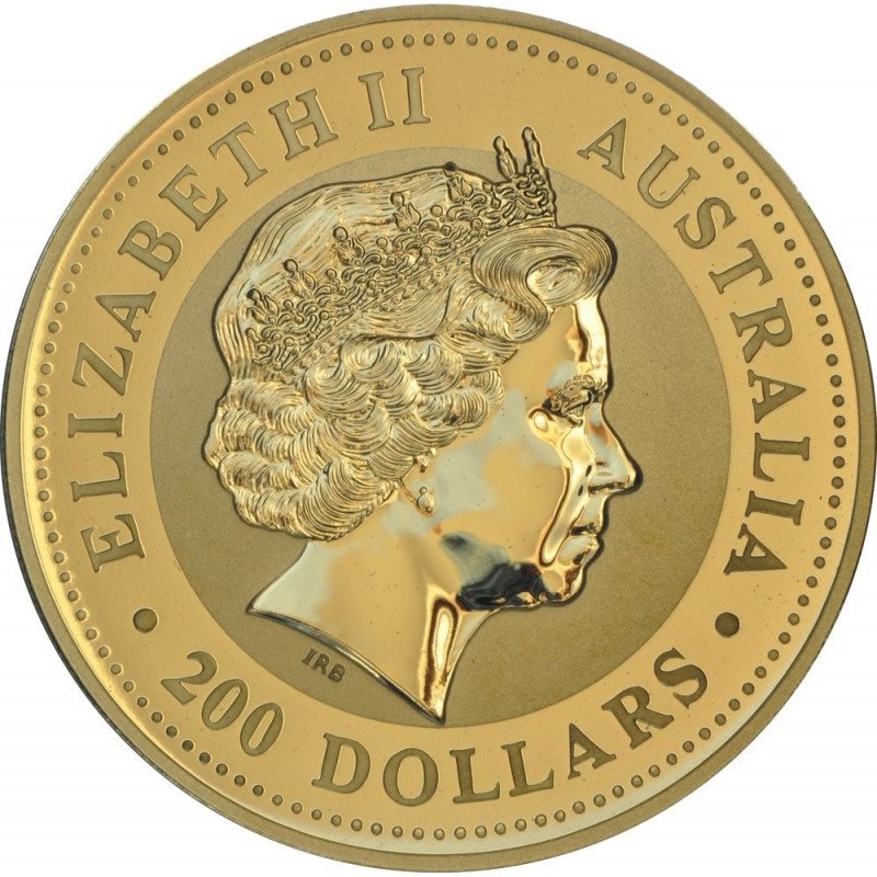 Dritto: mostra l'effigie di Jody Clark di Sua Maestà la Regina Elisabetta II, insieme al peso, alla denominazione ("200 DOLLARI") e all'anno di coniazione.